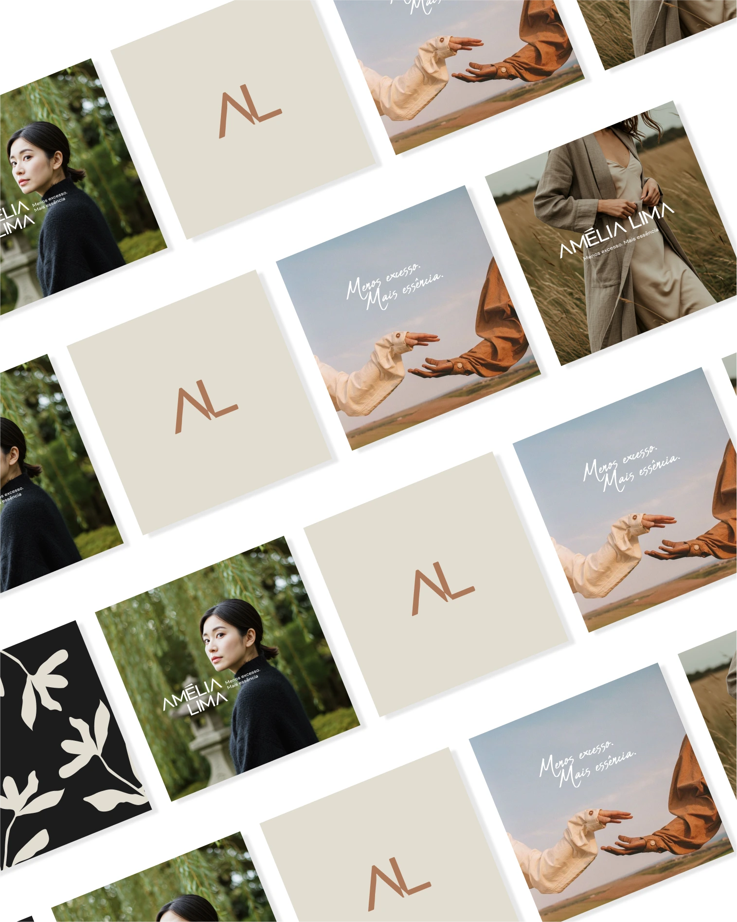 A identidade visual traduz esse manifesto silencioso. Uma estética refinada, sutil e consciente — que não precisa gritar para permanecer.